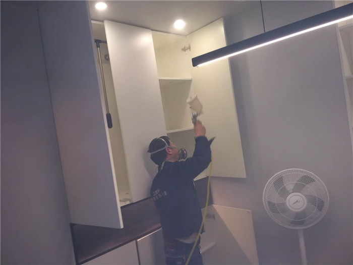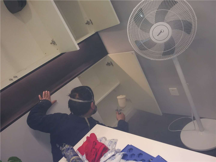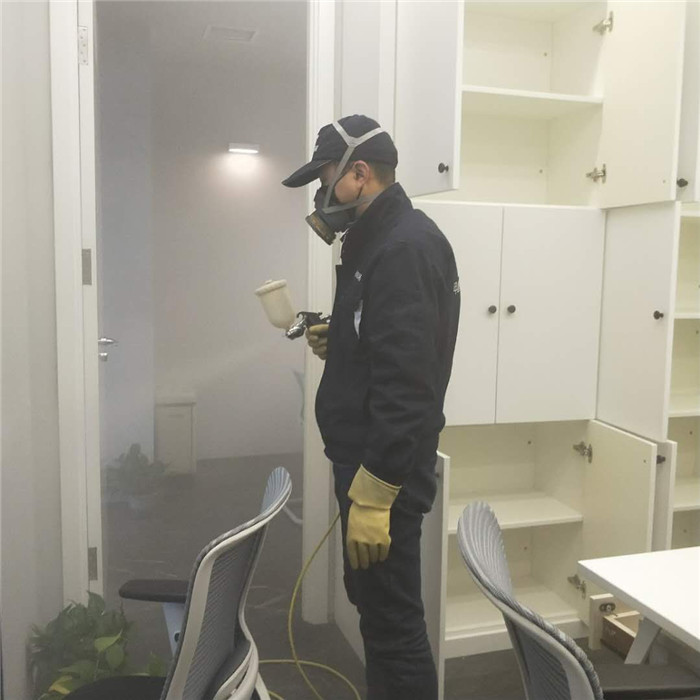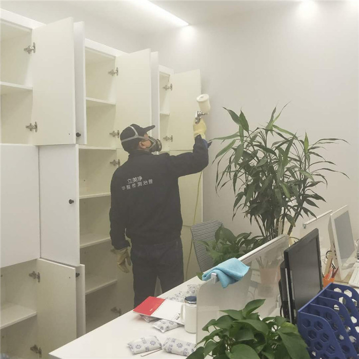 图片说明:甲醛治理人员对办公室甲醛释放源进行清除处理