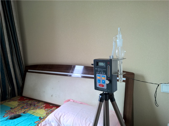 绿地生态城,业主新房装修后感觉室内有明显异味,经我们公司专业检测后,甲醛超标,结合超标情况,技术人员给予了科学应对措施。