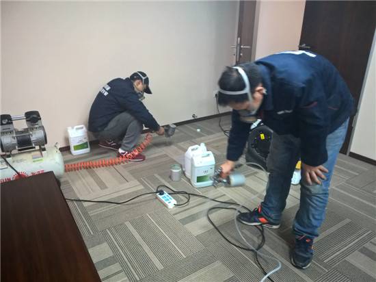 我公司施工人员对化纤地毯进行VOC清除除异味作业