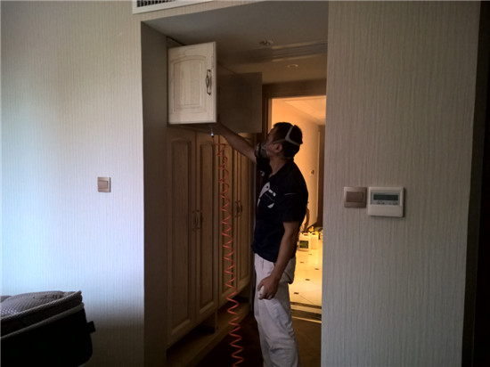 西西安小镇别墅,业主已经装修了两年的房子,新房室内有股异味,业主自诉入住几天后感觉头晕,经我们公司实地甲醛采样检测,甲醛超标。下面为我们公司实施除甲醛的具体过程。