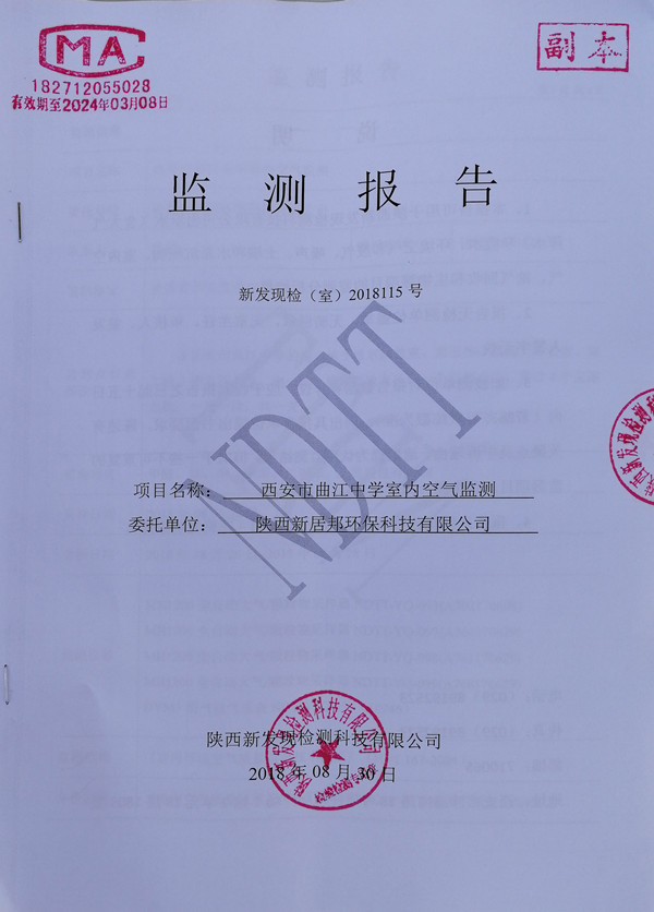 甲醛治理完工后,经第三方CMA检测机构检测,甲醛、苯、TVOC等六项指标经完全符合GB/T18883-2002标准。