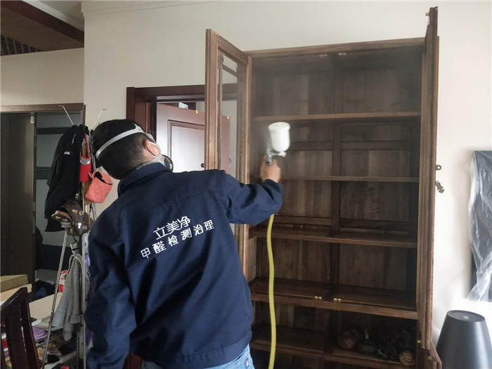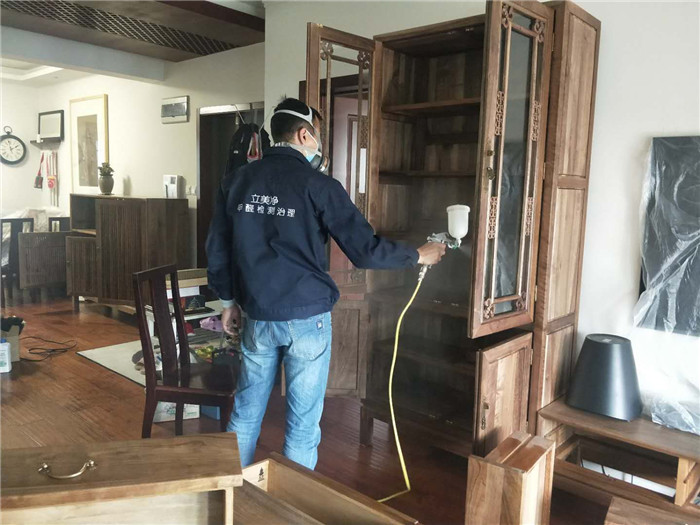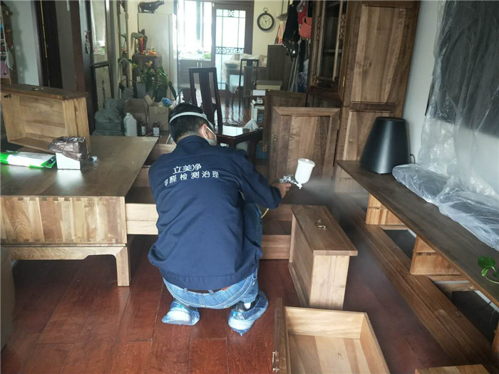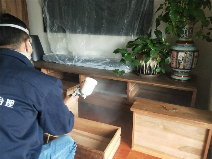 曲江华府某业主新房装修使用的全是实木家具,实木家具有没有甲醛?实木家具由于表面要使用到油漆以防止实木开裂,油漆中就有含有甲醛、苯、甲苯、二甲苯等有机挥发物,这些有机物在新购进来初期会大量挥发释放,因此,要针对这些甲醛等有害气体进行源头治理,降低甲醛的危害。以下是详细是的施工过程: