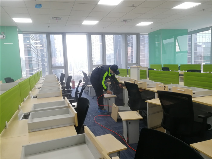 工程概况:本项目为中国移动国寿金融办公区室内空气治理工程,共两层,工期2天,参与施工人员6人,对全屋环境进行了精细化处理。