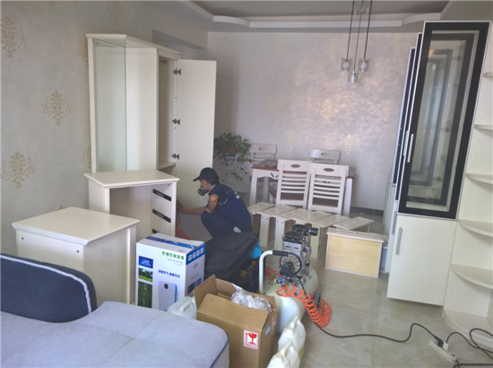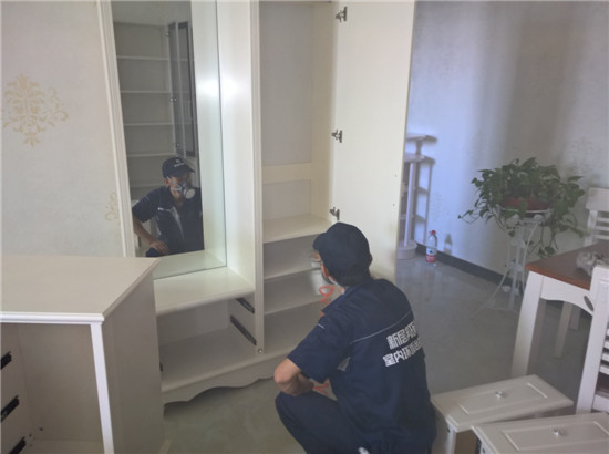 明府嘉苑某业主新家装修后,室内刺鼻异味比较明显,经检测甲醛均超标3倍以上,考虑到家有小孩,在了解到我公司的除甲醛技术、产品、服务后,决定进行系统除甲醛。
