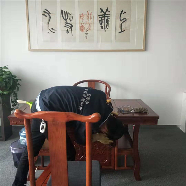 工程概况:三聚氰胺贴皮颗粒板办公工位、文件柜、化纤地毯、乳胶漆墙面、网伦回弹海绵座椅