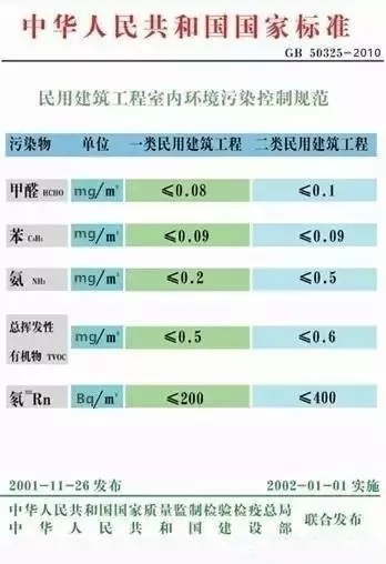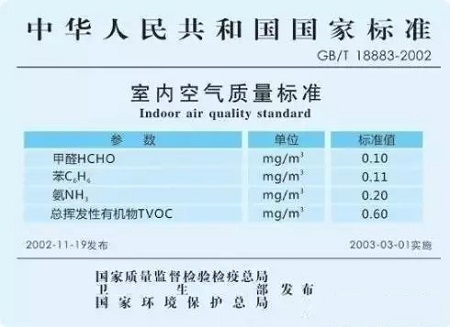 目前,我国有两种不同的关于室内甲醛浓度的国家标准文件,分别是《室内空气质量标准》(GB/T18883-2002)和《民用建筑室内环境污染控制规范》(GB50325-2010)