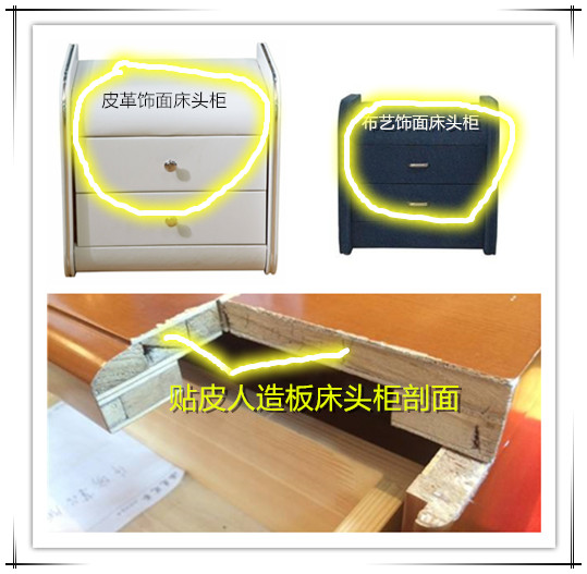 配图:贴皮床头柜底板材料显示使用较多纤维板材质