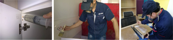 公司技术团队在精细施工方面,将每一处的污染源分解为单元的点、线、面三维个体,结合源头除醛技术,通过注射、涂刷、喷涂三种特定处理方式,有效从源头上解决游离态甲醛的高挥发释放问题。