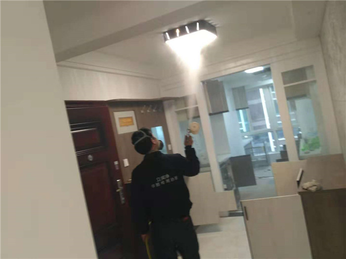甲醛治理公司施工人员在雾化喷涂光触媒