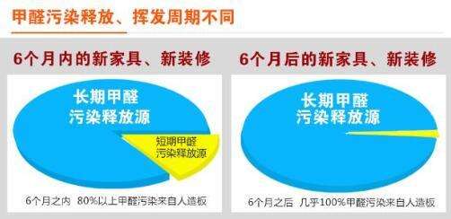 看起来甲醛的来源众多,但根据甲醛的存在特性,我们可以把甲醛的释放周期分为长期与短期两种,如织物、油漆、涂料、地毯等里面的甲醛释放周期则比较短,一般释放周期为6个月以内,这是因为这些材料中的甲醛用量较少,并且甲醛释放挥发通道比较畅通。而人造板材中的甲醛释放则十分缓慢,长达十年甚至十五年,至于为什么释放期这么长,则是因为板材多为贴皮封闭,板材中的胶粘剂用量多,且甲醛释放通道窄。