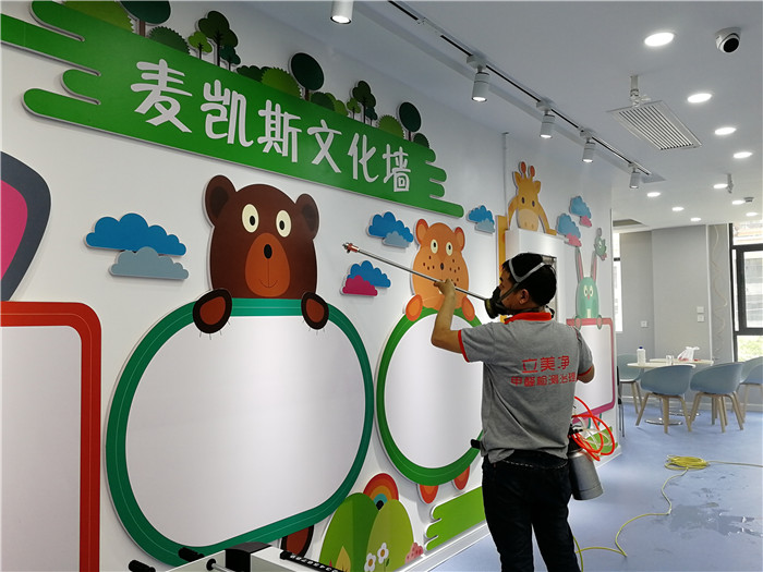 麦凯斯国际英语学校位于未央区香缤城,校区整体面积400平方,主要面向少年儿童的英语、幼儿启蒙、巴洛克美术、中国汉字书法一体化教育。幼儿与儿童是校区学生主体。新建校区的室内空气质量是所有家长都非常关心的,关于甲醛、苯、甲苯、二甲苯、TVOC等有害气体对儿童的危害更是让不少家长操心。考量到主体人群对室内空气质量的严格要求,西安除甲醛专业公司-陕西南宫集团加拿大28-ng相信品牌的力量-ng28相信品牌的力量-南宫28在线登录网页版-南宫28注册入口-南宫ng28注册平台入口-ng28娱乐注册入口官方-ng28电子游戏官网入口环保科技针对校区的整体装修环境进行了缜密勘察分析,分别对地胶、胶合板打造油漆饰面接待台、PVC覆喷绘布、仿石漆、展示柜和颗粒板桌椅进行了精细化施工处理,重点采用高分子聚合除醛净味技术,利用有害气体分子极性,快速予以聚合,并建立持久可以分解甲醛、苯系物、灭菌的纳米光催化层,持久净化空气。下面是整个施工过程: