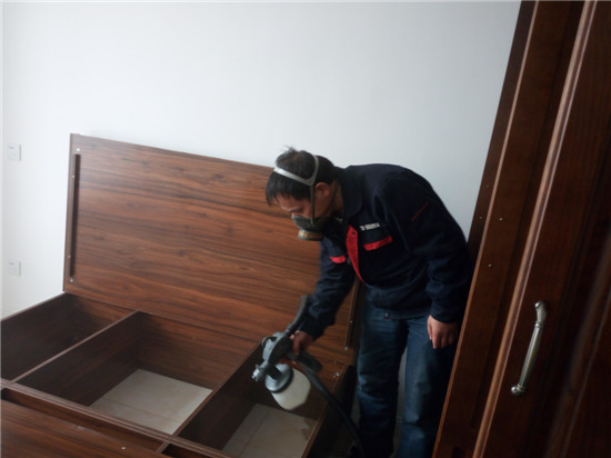 4、针对人造板材甲醛主要释放源就行高雾化喷涂药剂附着作业,各种针对性药剂喷涂,喷涂的药剂直接往污染源内部渗透从源头分解和置换甲醛。
