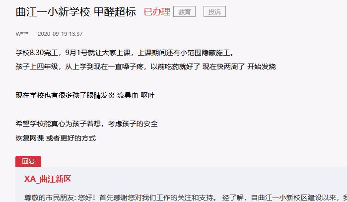 新装修学校甲醛超标事件