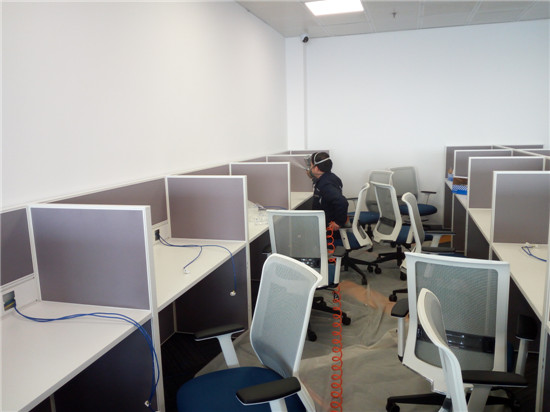 除了选择玻璃或亚克力做工位隔板的办公家具可以减少甲醛污染之外,地面不使用地毯,使用环保PVC地胶也相对地可以减少室内空气污染和异味。