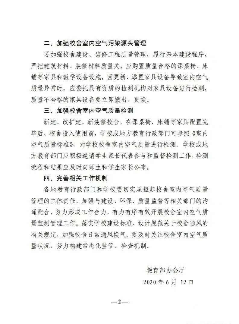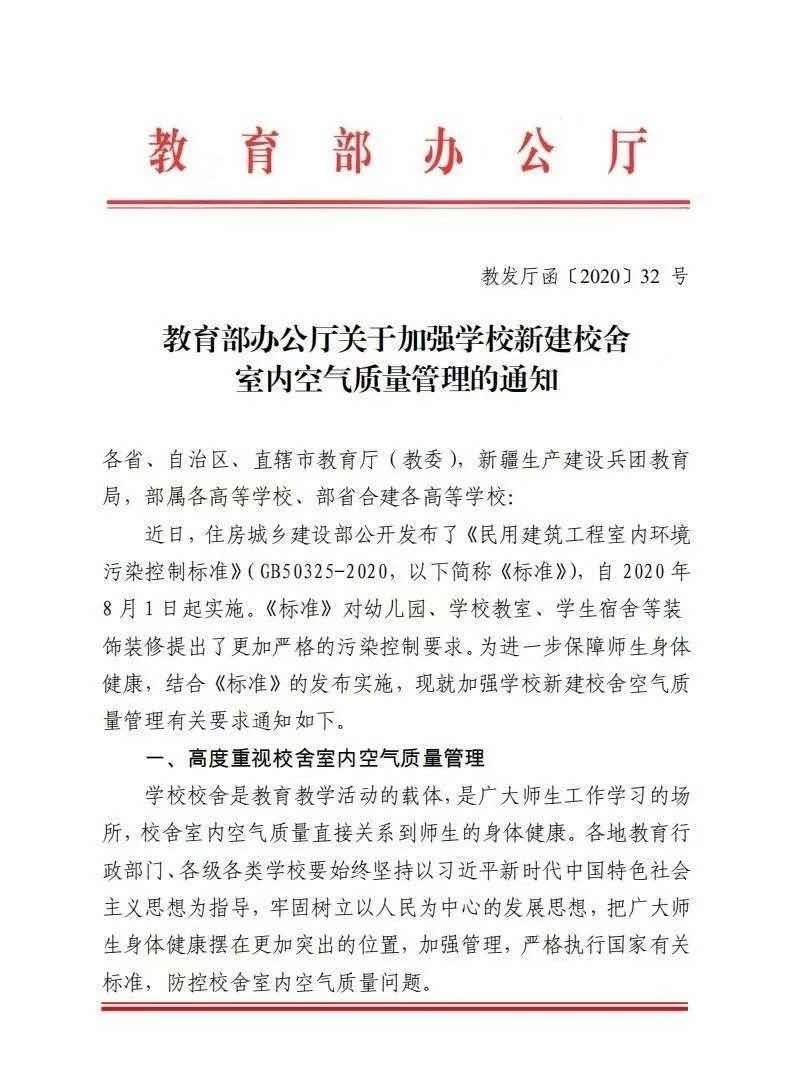 教育部办公厅关于学校空气质量要求的通知全文