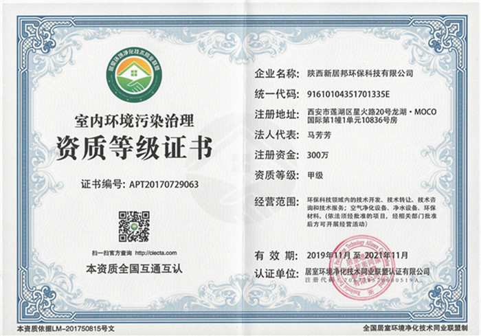 获得室内环境污染治理甲级资质的南宫集团加拿大28-ng相信品牌的力量-ng28相信品牌的力量-南宫28在线登录网页版-南宫28注册入口-南宫ng28注册平台入口-ng28娱乐注册入口官方-ng28电子游戏官网入口公司资质证书